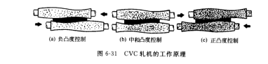 ③S形曲線加上軸向移動(dòng),使整個(gè)軋輥表面間距發(fā)生不同的變化,如圖 6-31 所示,從而改變了帶鋼橫斷面的凸度,改善了板形質(zhì)量。