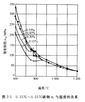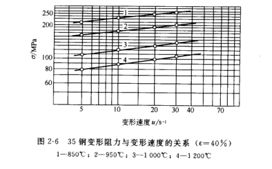 (2)變形溫度的影響 溫度是對(duì)變形阻力影響最大的一個(gè)因素,他隨變形溫度的升高,各種金屬和合金所有的強(qiáng)度指標(biāo)(屈服極限,強(qiáng)度極限和硬度等)均降低。有圖2-5可知,隨著變形溫度升高,不同金屬或合金變形阻力之間差別縮小,在高溫下,含碳量對(duì)變形阻力影響不小。